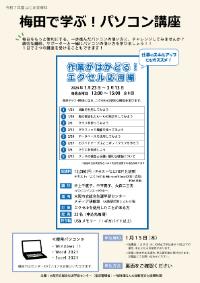 | 内容 | エクセルを使ったことがある方向けのパソコン講座です。 毎日をもっと便利にする、一歩進んだパソコンの使い方にチャレンジしてみませんか? グラフの作成やマクロ・ピボットテーブル等、効率アップ・時短になるエクセルの便利な機能を学びます。 講師・サポーターがわかりやすく、丁寧に指導します。 |