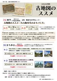 | 内容 | 【締め切り日を過ぎましたが、定員に空きがあるため現在先着順で受付を行っています。本ページからあるいは難波市民学習センター (06-6643-7010)までお電話もしくはご来館いただき、お申込みください。】 ・本講座は10/30並びに11/15に実施する講座【古地図のススメ「大大阪時代のまちづくり」】の内容に関連するまち歩きです。谷町4丁目~大阪城ホール付近をコースにまちの魅力・歴史・文化を解説しながらまち歩きを行います。 ・10/30並びに11/15に実施予定の座学、【古地図のススメ「大大阪時代のまちづくり」】受講希望の方は、お手数ですが別途申込フォームよりお申込みください。 |
