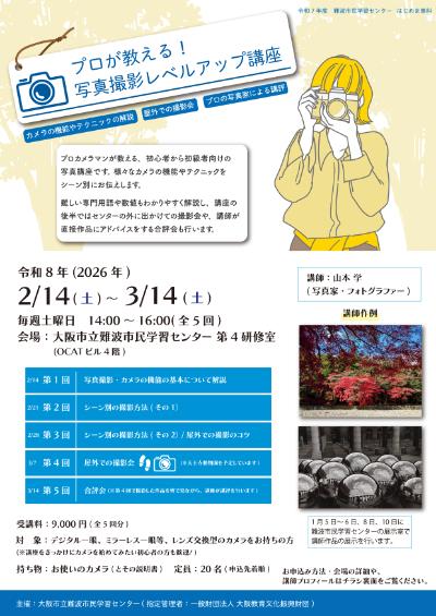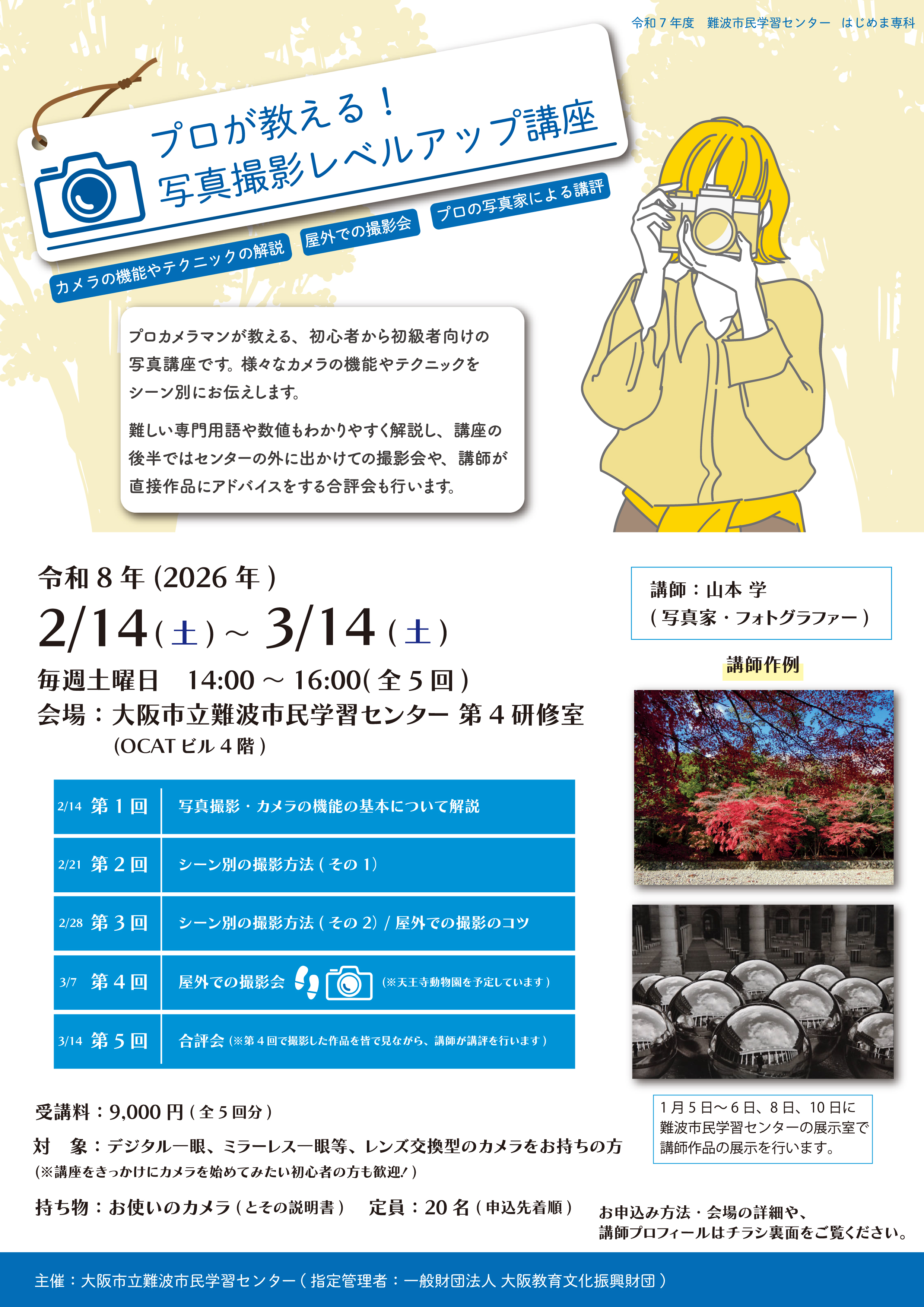 | 申込・問合先名 | 大阪市立難波市民学習センター http://www.osakademanabu.com/namba/ |