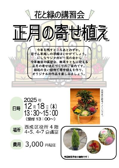 | 2025年12月18日 | 花と緑の講習会 正月の寄せ植え(申込締切日:11/28) |