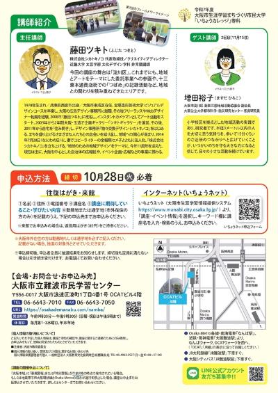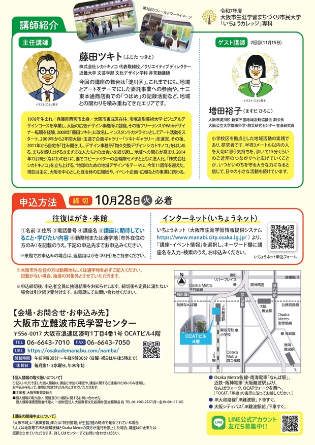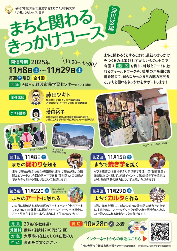 | タイトル | いちょうカレッジ専科「まちと関わるきっかけコース 淀川区編」(先着順) |