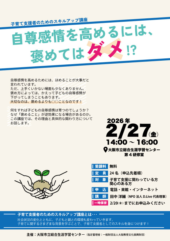 子育て支援者のためのスキルアップ講座③「自尊感情を高めるには、褒めてはダメ!?」