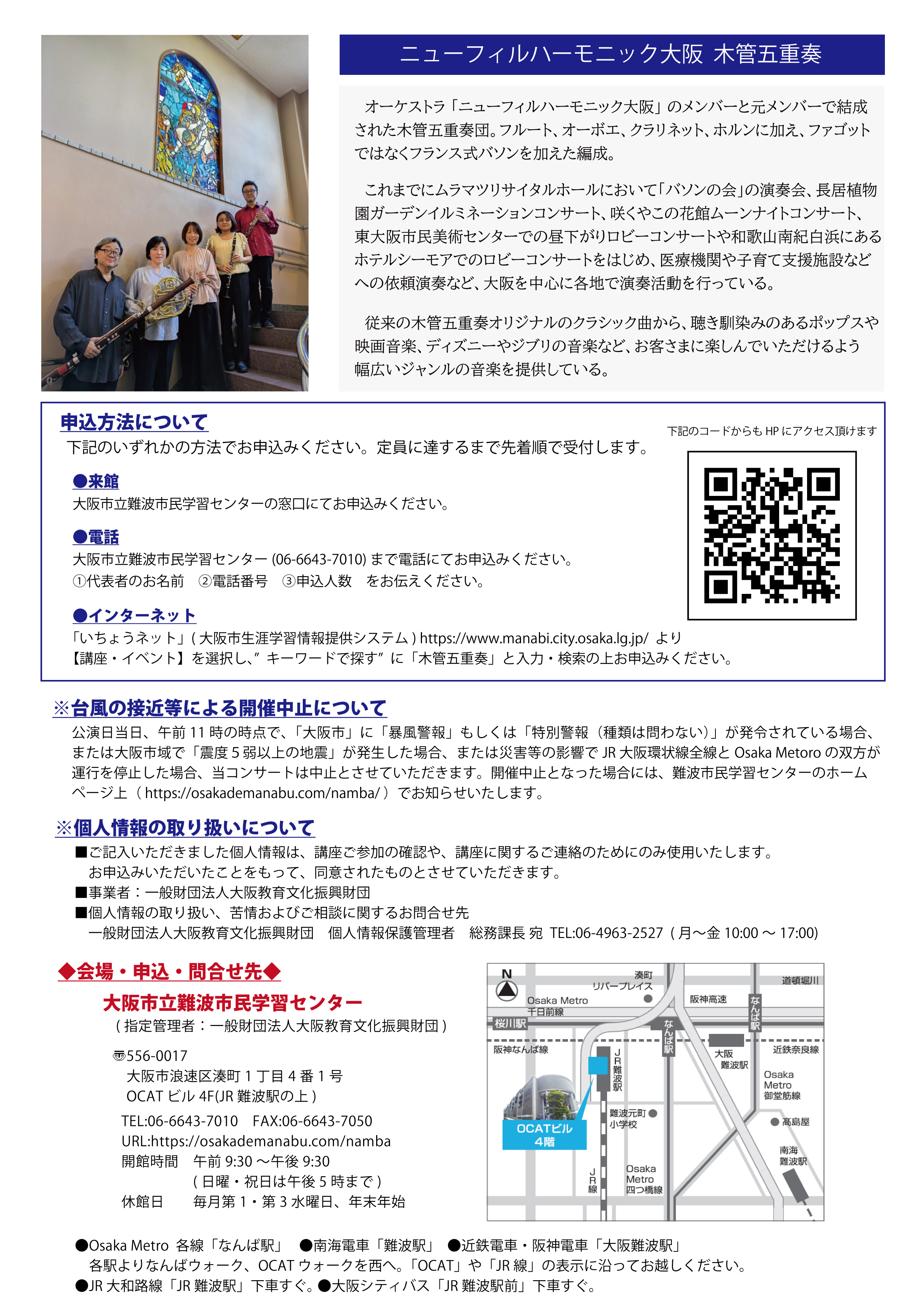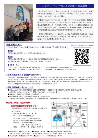 | 講師・出演者名 | ニューフィルハーモニック大阪 木管五重奏 |