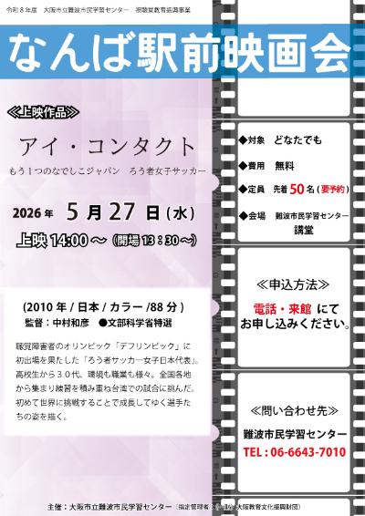 | タイトル | なんば駅前映画会(2026年5月)上映作品「アイ・コンタクト~もう1つのなでしこジャパン ろう者女子サッカー~」 |