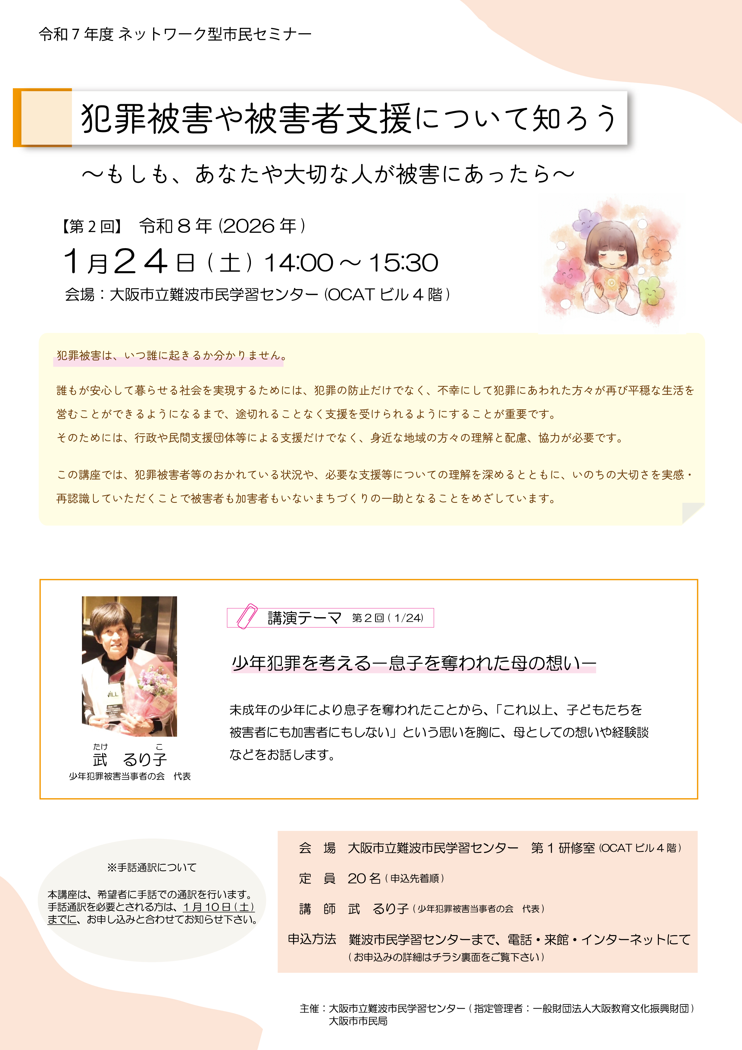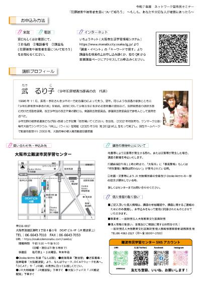 | タイトル | ネットワーク型市民セミナー「犯罪被害や被害者支援について知ろう ~もしも、あなたや大切な人が被害にあったら~」(第2回) |