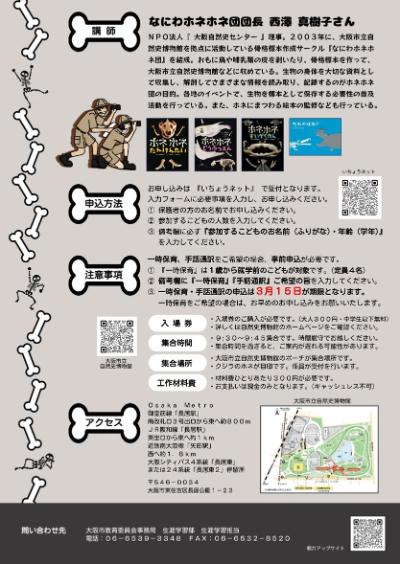 ・講座受講料は無料です ・大阪市立自然史博物館の入場料、工作の材料費が別途必要です ※入場料について詳しくは大阪市立自然史博物館のホームページをご確認ください ・材料費:300円/1人 ※お支払いは現金のみとなります ※キャッシュレス決済はご利用いただけません |