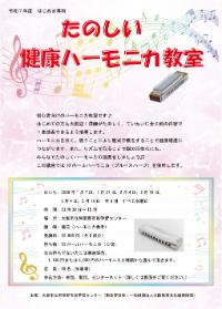 | 内容 | 初心者向けのハーモニカ教室です。初めての方でも大丈夫。講師がたのしく、優しく指導します。 全6回で1曲演奏できるようになります。 吹く、吸うことで腹式呼吸が自然に身に付き、健康増進にもなります。リズムをとることで脳の活性化にも。 みなさんと楽しくハーモニカ演奏をしましょう‼ この講座では10ホールハーモニカ(ブルースハープ)を使用します。 |