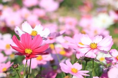 長居植物園の秋を彩るのは、可憐なコスモス!色とりどりのコスモスが秋風に揺れ、咲き乱れる光景は、まさに絶景!長居植物園で秋の一日を楽しみませんか?