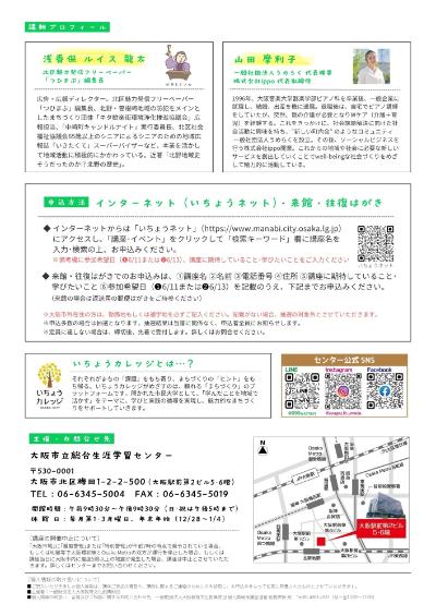 いちょうカレッジ(大阪市生涯学習まちづくり市民大学)は、まちの魅力や課題について学び、学んだことを地域で活かし魅力的な地域づくりをめざすための講座です。