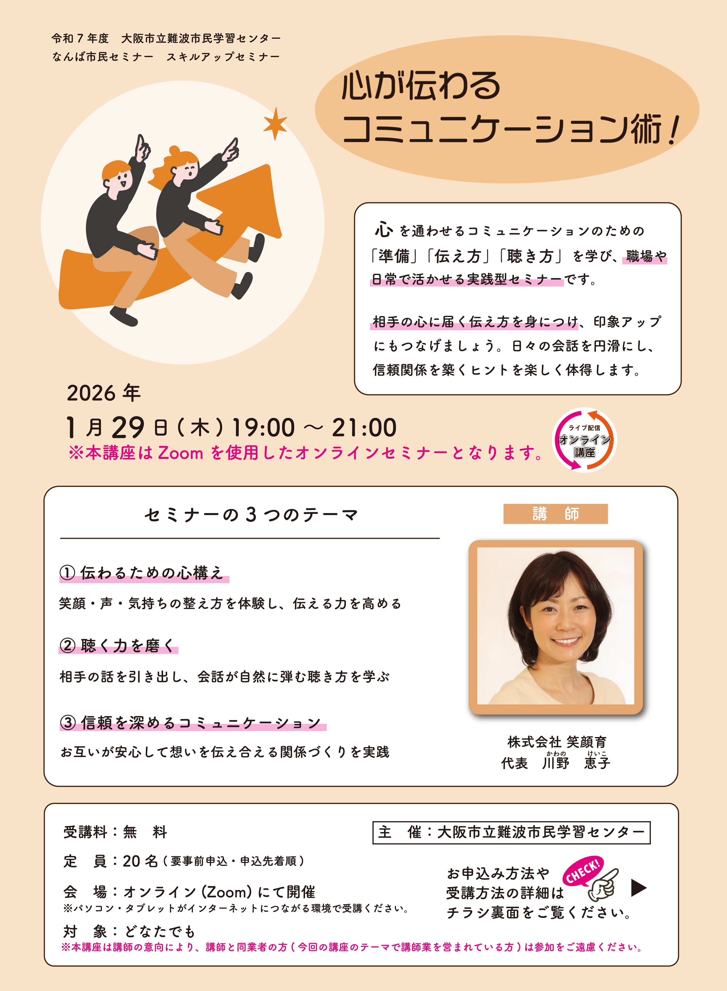 【オンライン・ライブ配信】スキルアップセミナー「心が伝わるコミュニケーション術!」