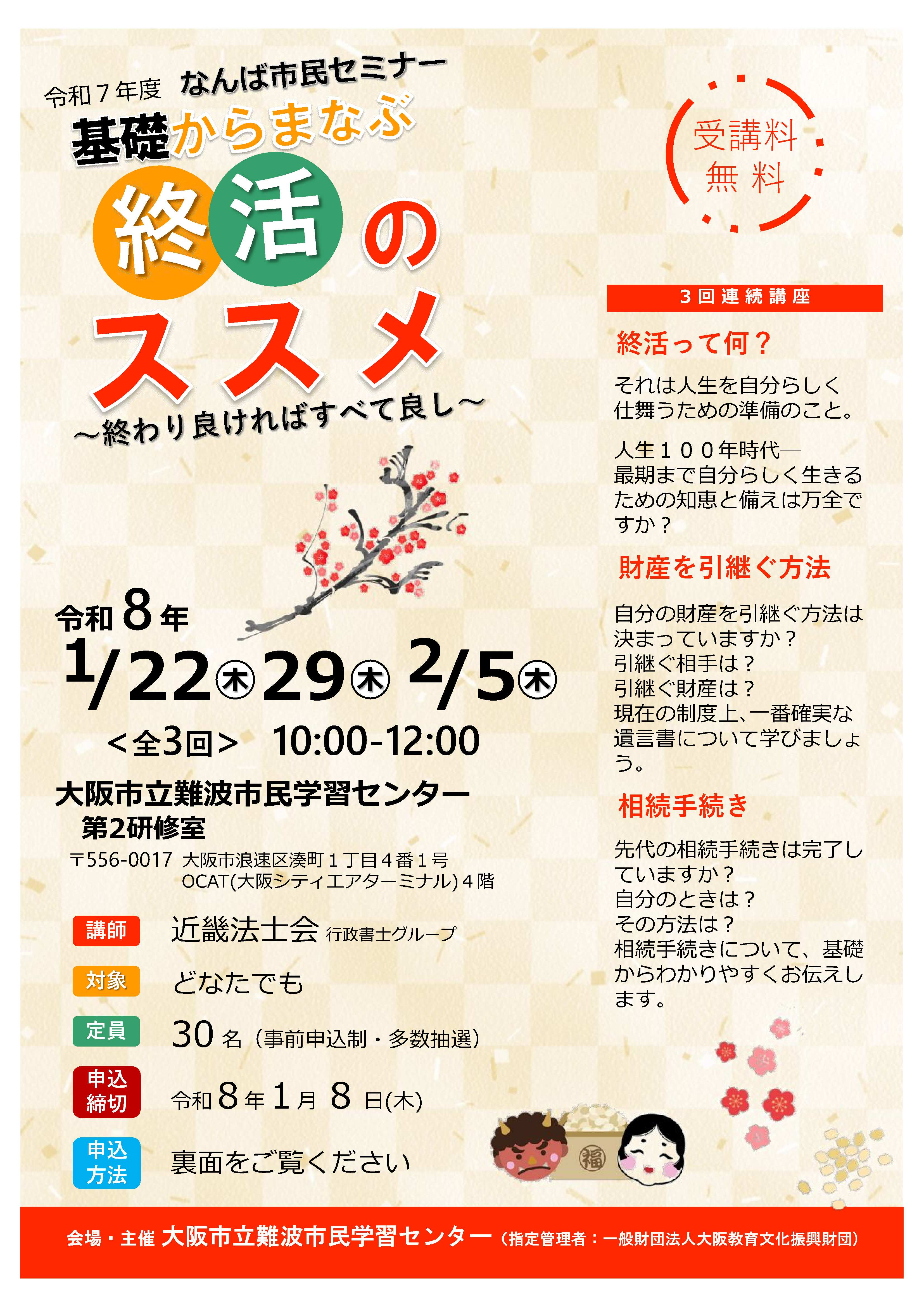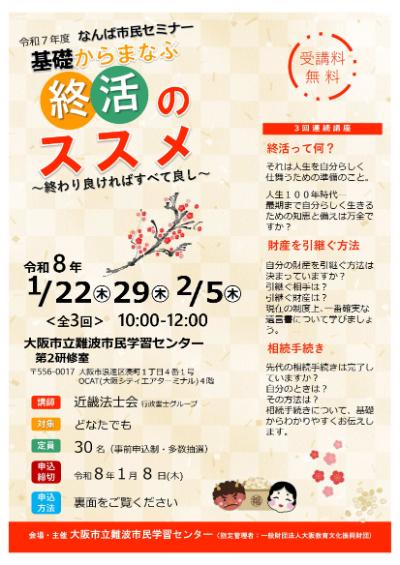 なんば市民セミナー「基礎からまなぶ終活のススメ」