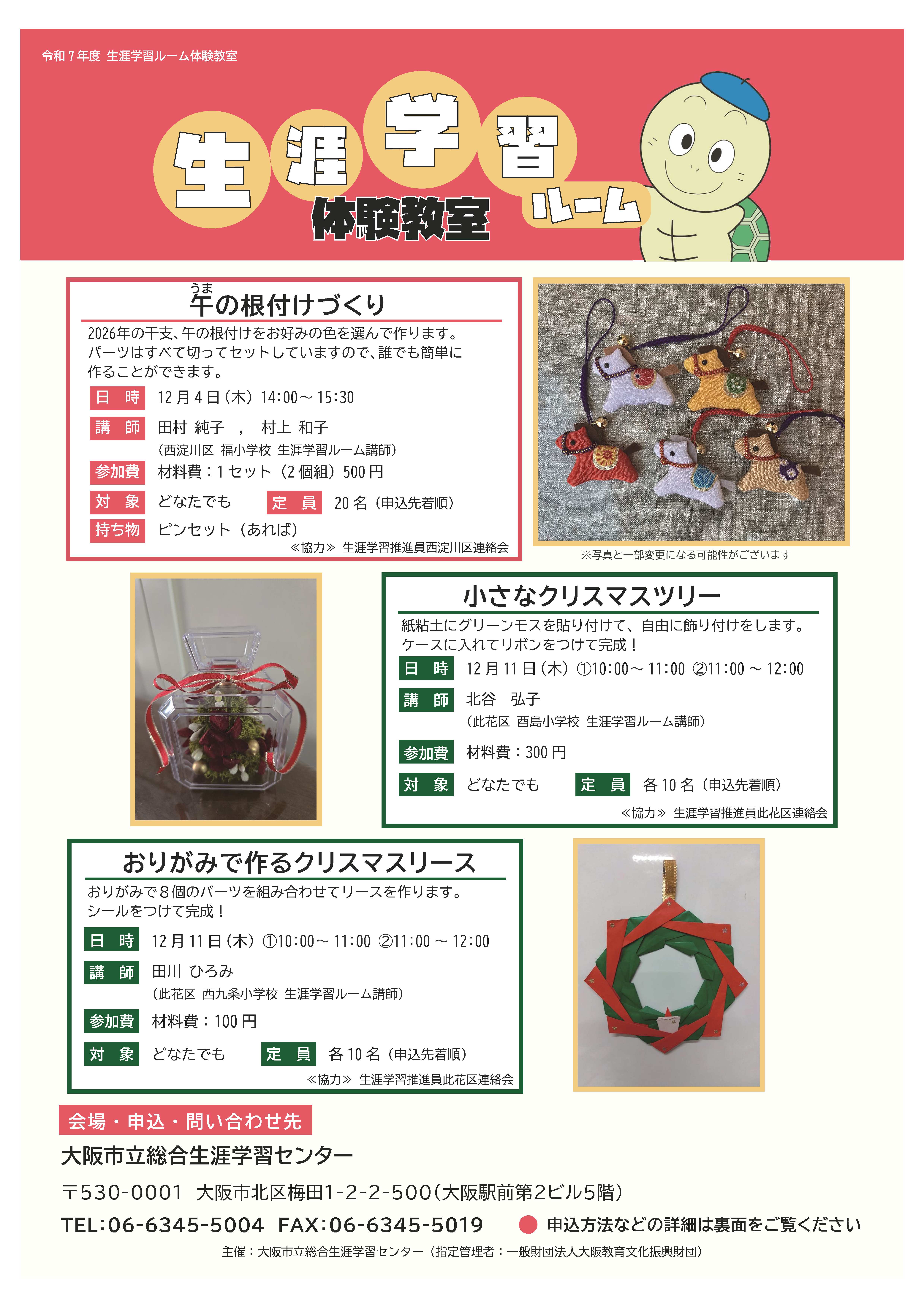 【12月11日(木)11:00~】小さなクリスマスツリー(此花区生涯学習ルーム体験教室)
