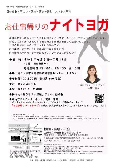 お仕事帰りのナイトヨガ※インターネット受付は終了。電話・来館にてお問い合わせください。