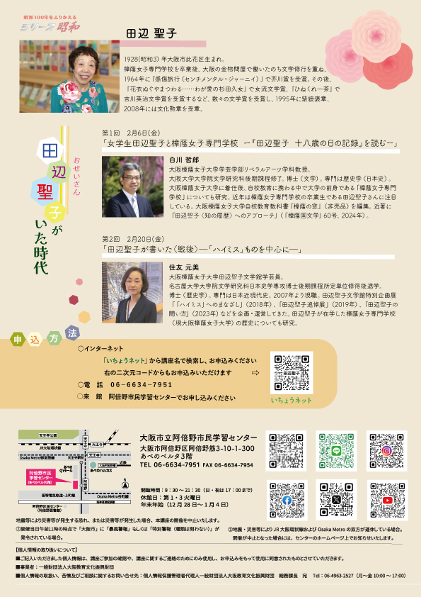 シリーズ昭和 田辺聖子がいた時代~十八歳の日記と「ハイミス」小説~ おもて