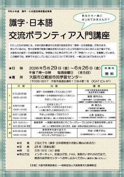 大阪市内の識字・日本語教室では、学習者と共に学ぶボランティア「学習パートナー」を募集しています。